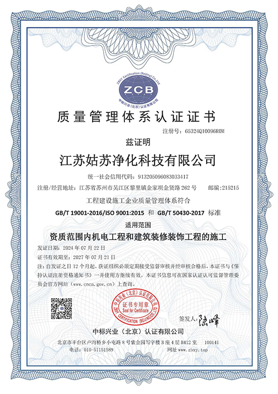 質(zhì)量管理體系認(rèn)證證書